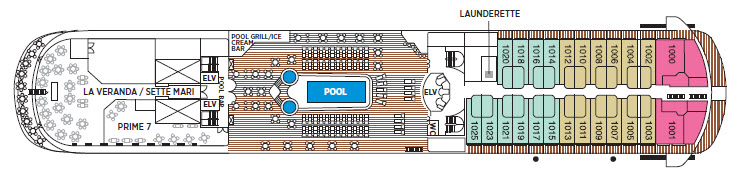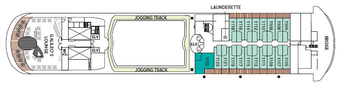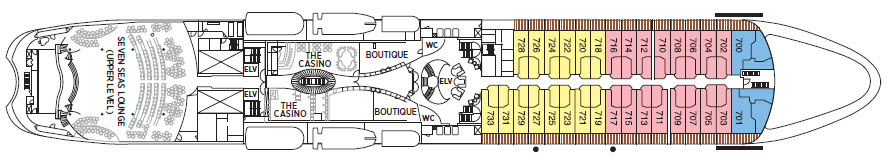 在 Seven Seas Navigator 上 90% 的房間設置有陽台,最小的房間 G & H 也有 8.5 坪,數量最多的主力房型-Concierge Suite 則有 10 坪。