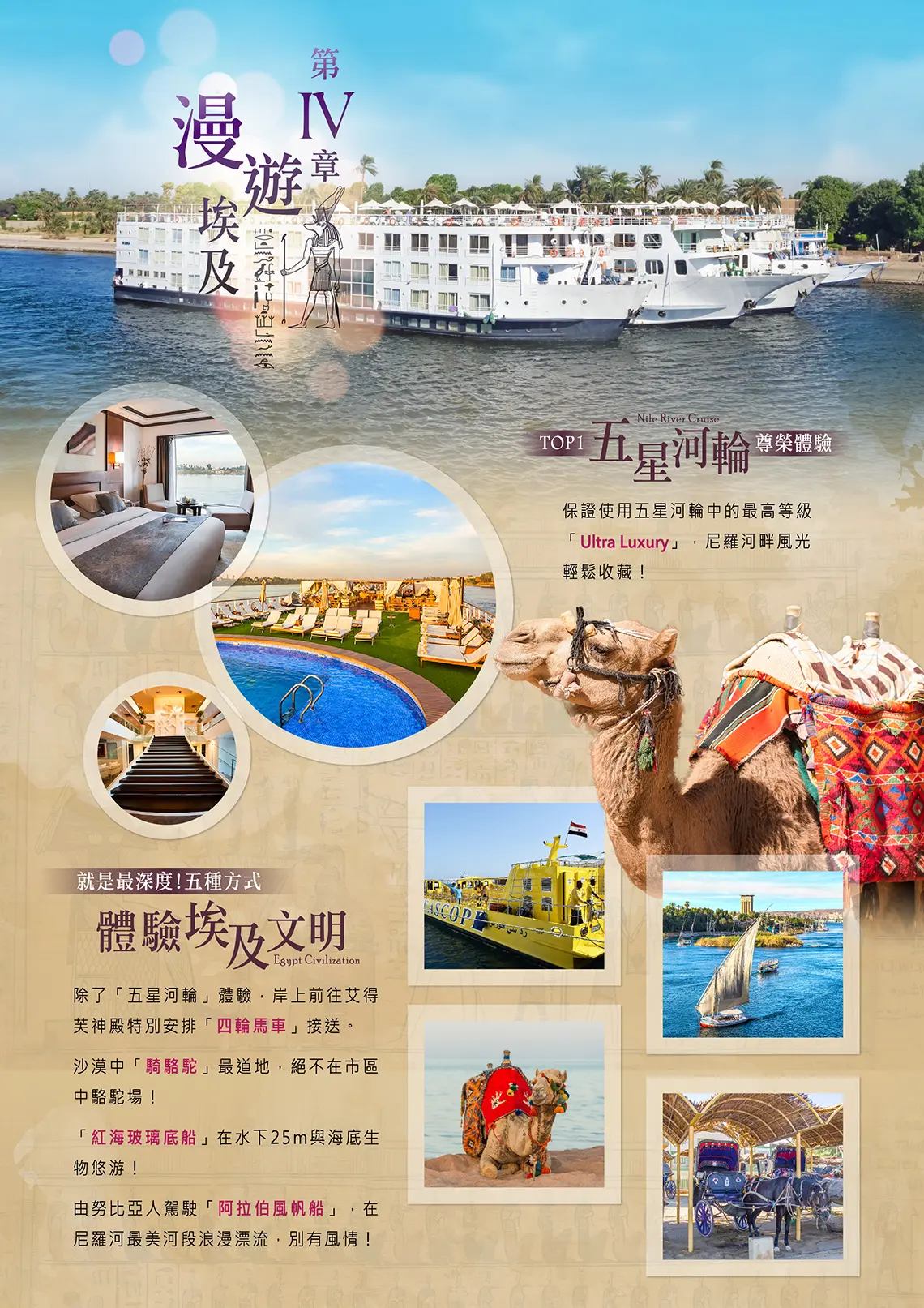 旅行不但是空間移動,更是心靈的飛翔之途。出發!展開穿越時空的「北非埃及的奇幻之旅」!