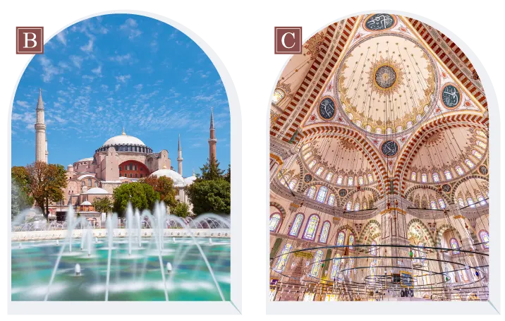 ▌藍色清真寺因建築內部使用的「伊茲尼克靛藍磁磚」而得此名,一般清真寺只會有1~4根的宣禮塔,擁有六根宣禮塔就是藍色清真寺最特別之處,也因此曾經造成麥加大清真寺的震怒,弭平風波後保存下來的華麗巨作。