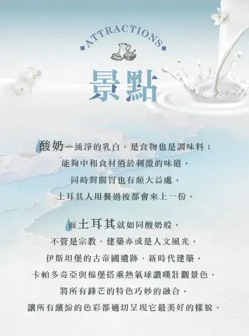 在熱情的地中海渡假古城-安塔麗雅,到老城區散策、遊船,盡覽地中海的湛藍夢幻、感受古城街道建築的獨特韻味,安排入住5星濱海飯店連泊,這是最舒適享受的休憩之所。
