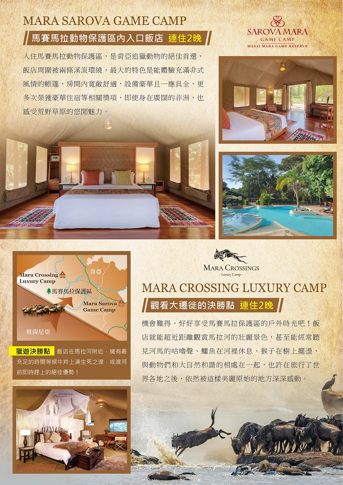 更安排連續4晚入住馬賽馬拉保護區,大大提升見證這場動物盛事的成功率,跟著我們一起體驗這場人生至極的深刻感動。