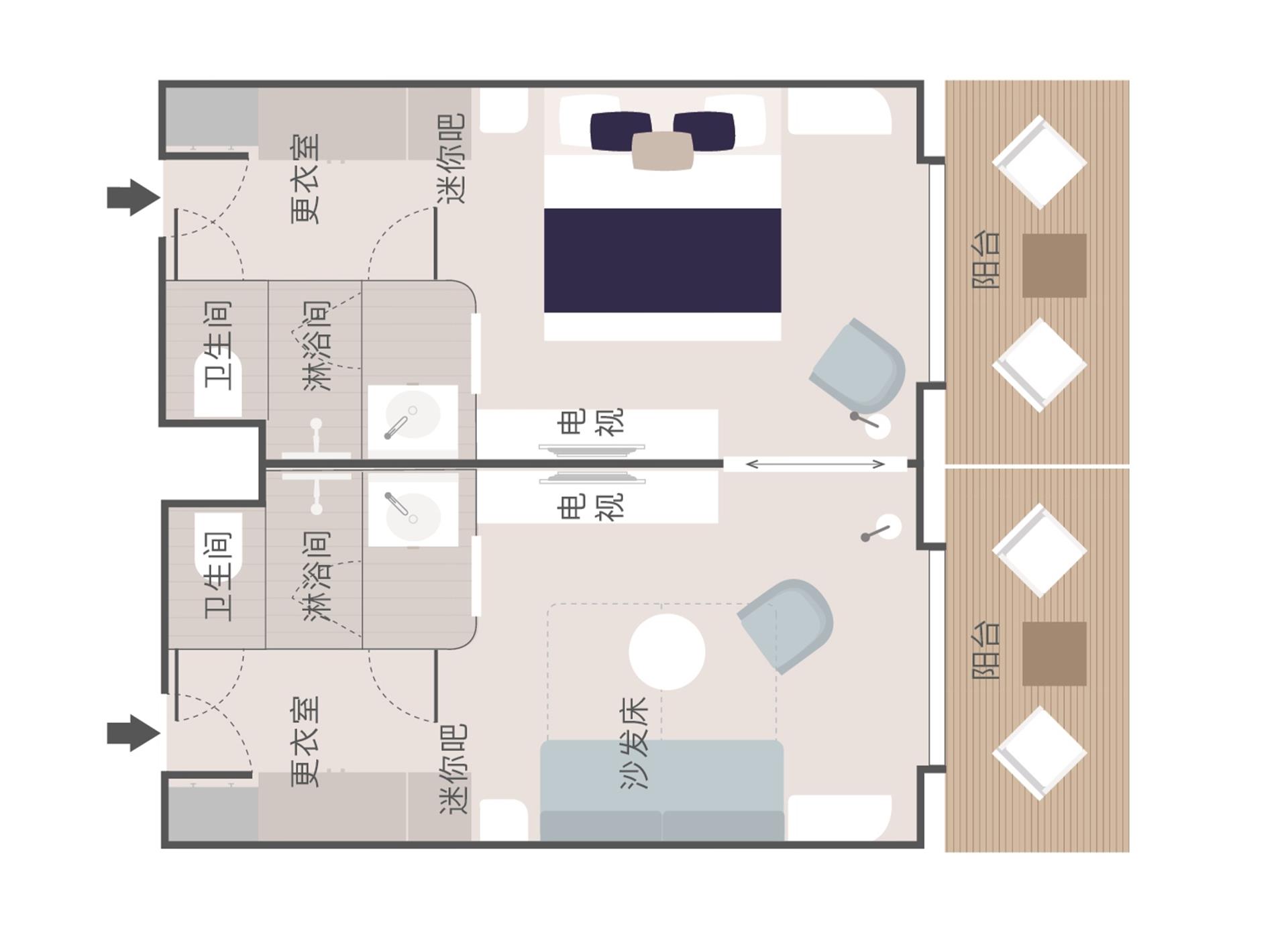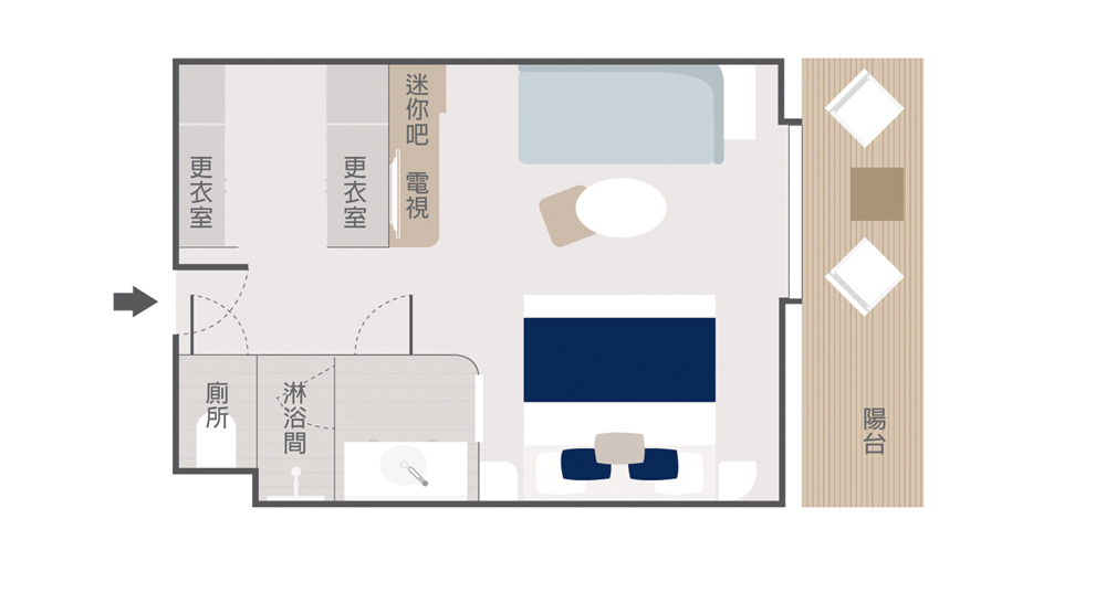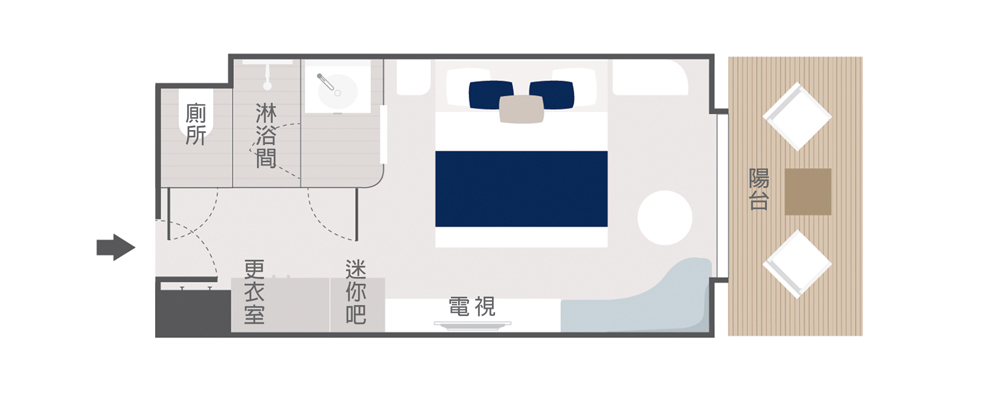 圖片僅供參考 :大小、佈局和家具可能會有所不同(在同一客艙類別內)。