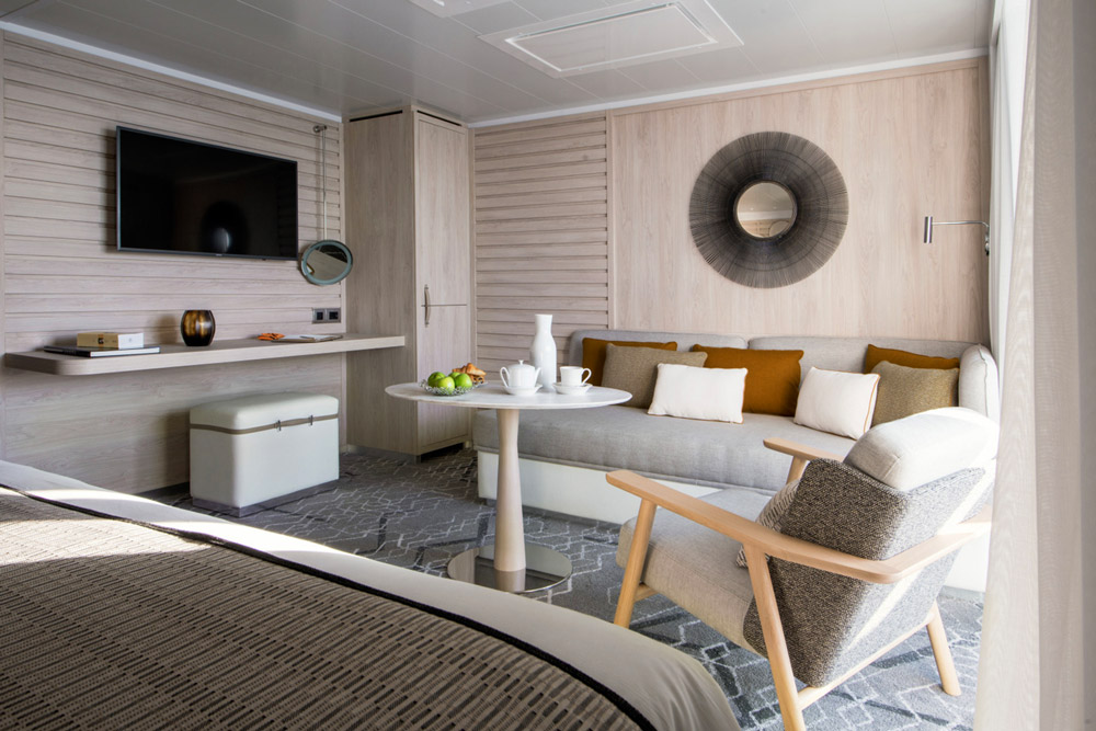 ● 臥室配有一張加大雙人床(180 x 200 公分)或兩張單人床(90 x 200 公分)休息室配有可轉換成雙人床(160 x 190 公分)的沙發、扶手椅和第二台電視,浴室配有淋浴和 Balneo 浴缸、32m²私人陽台(含2張躺椅和4人餐桌 )